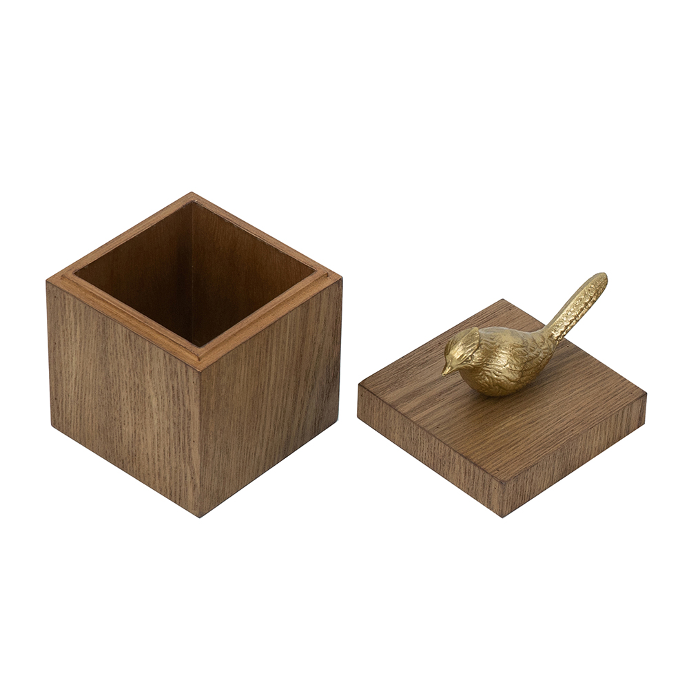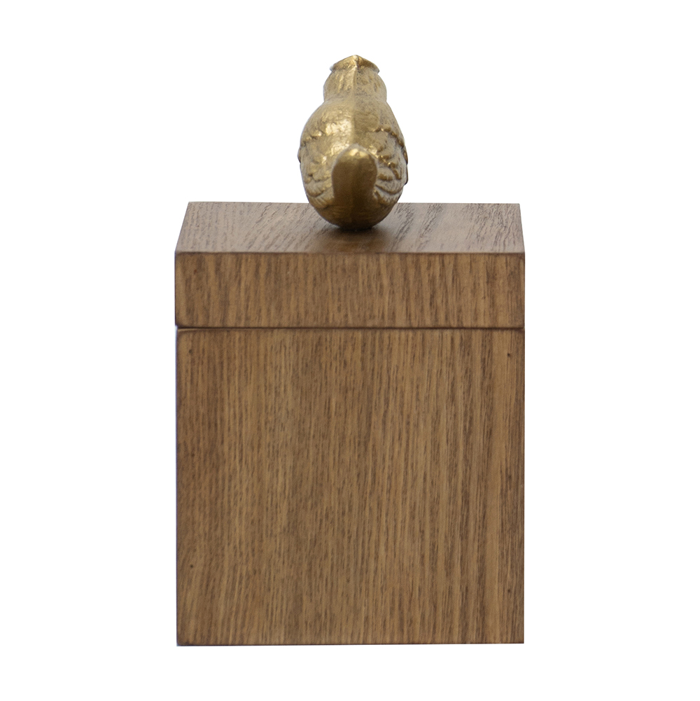 CAJA DE MADERA CON PAJARO DORADO S