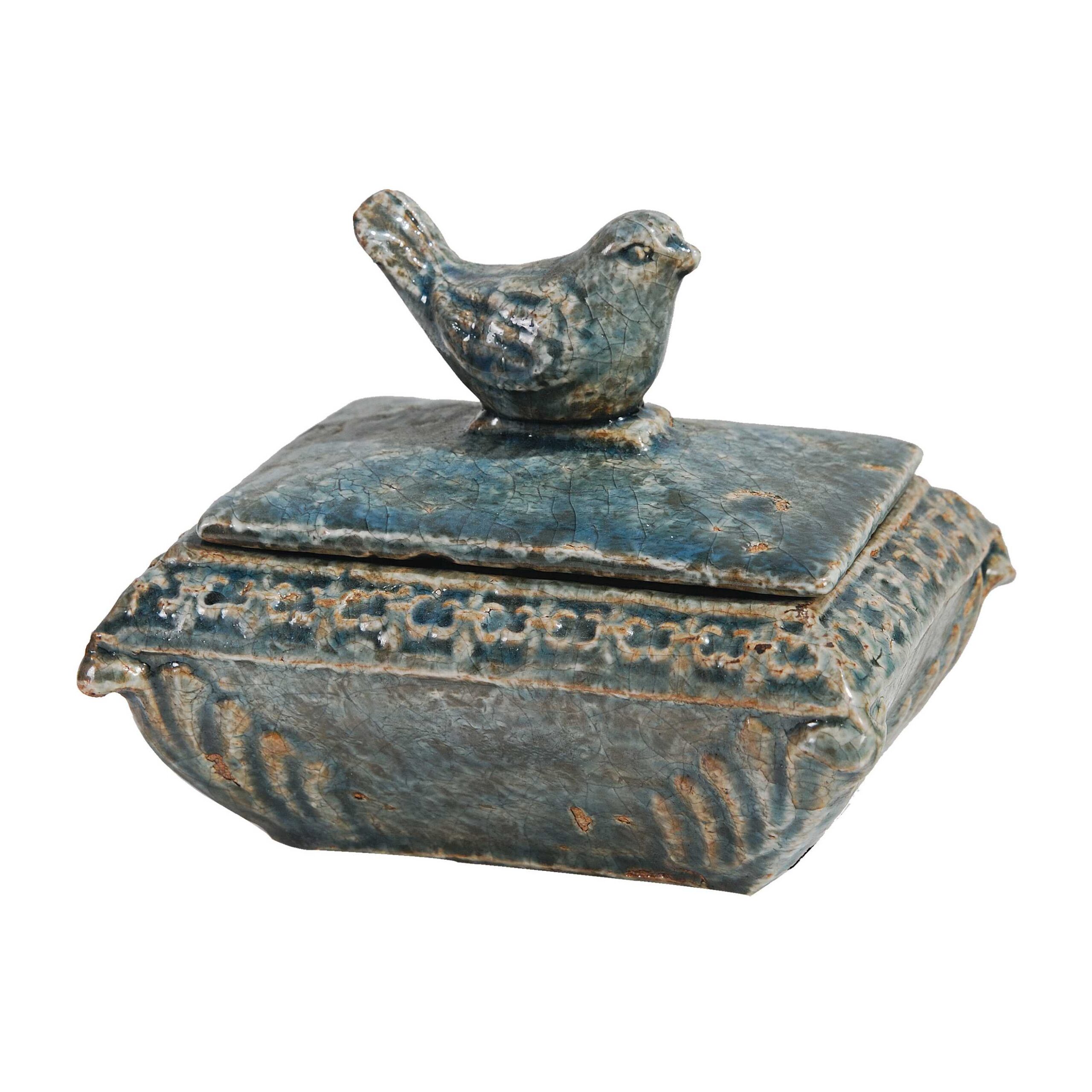 CAJA DECORATIVA DE CERAMICA CON TAPA DE PAJARO
