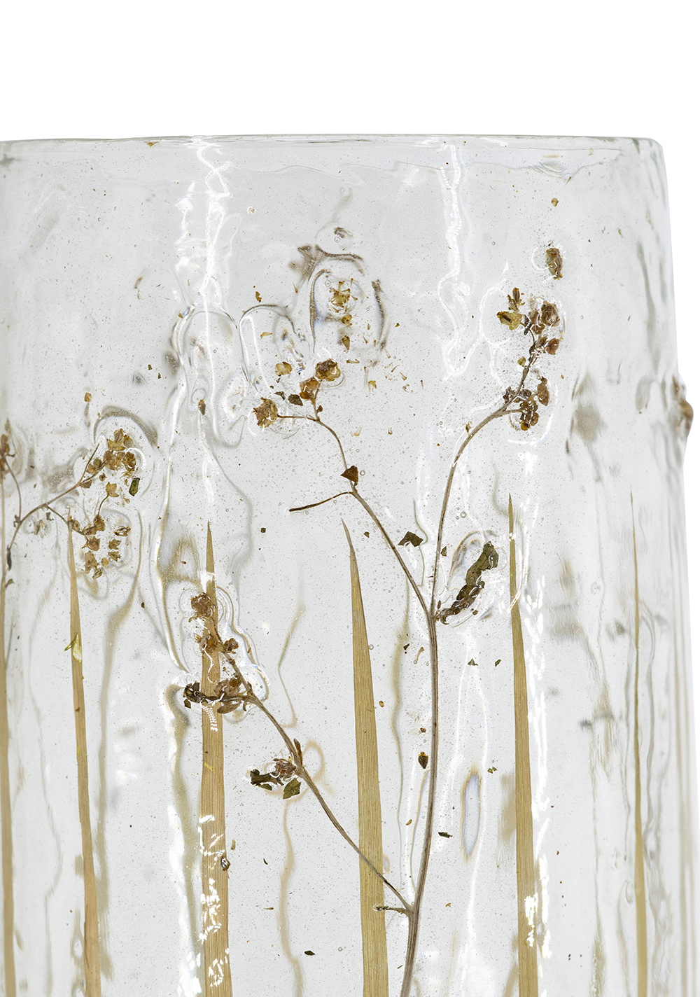 FLORERO DE VIDRIO DETALLE FLOR SECA M
