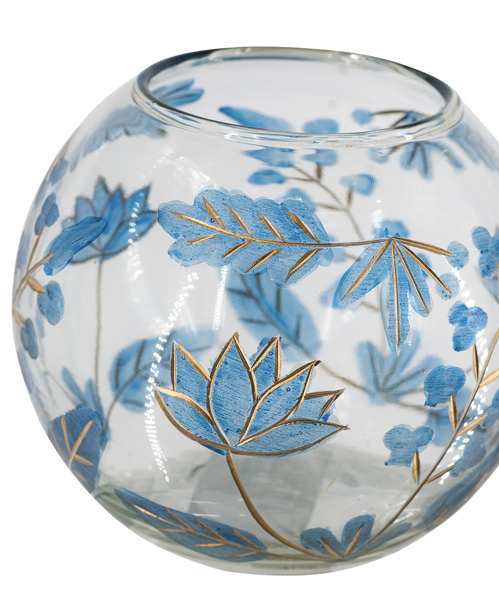 FLORERO VIDRIO REDONDO FLOR AZUL