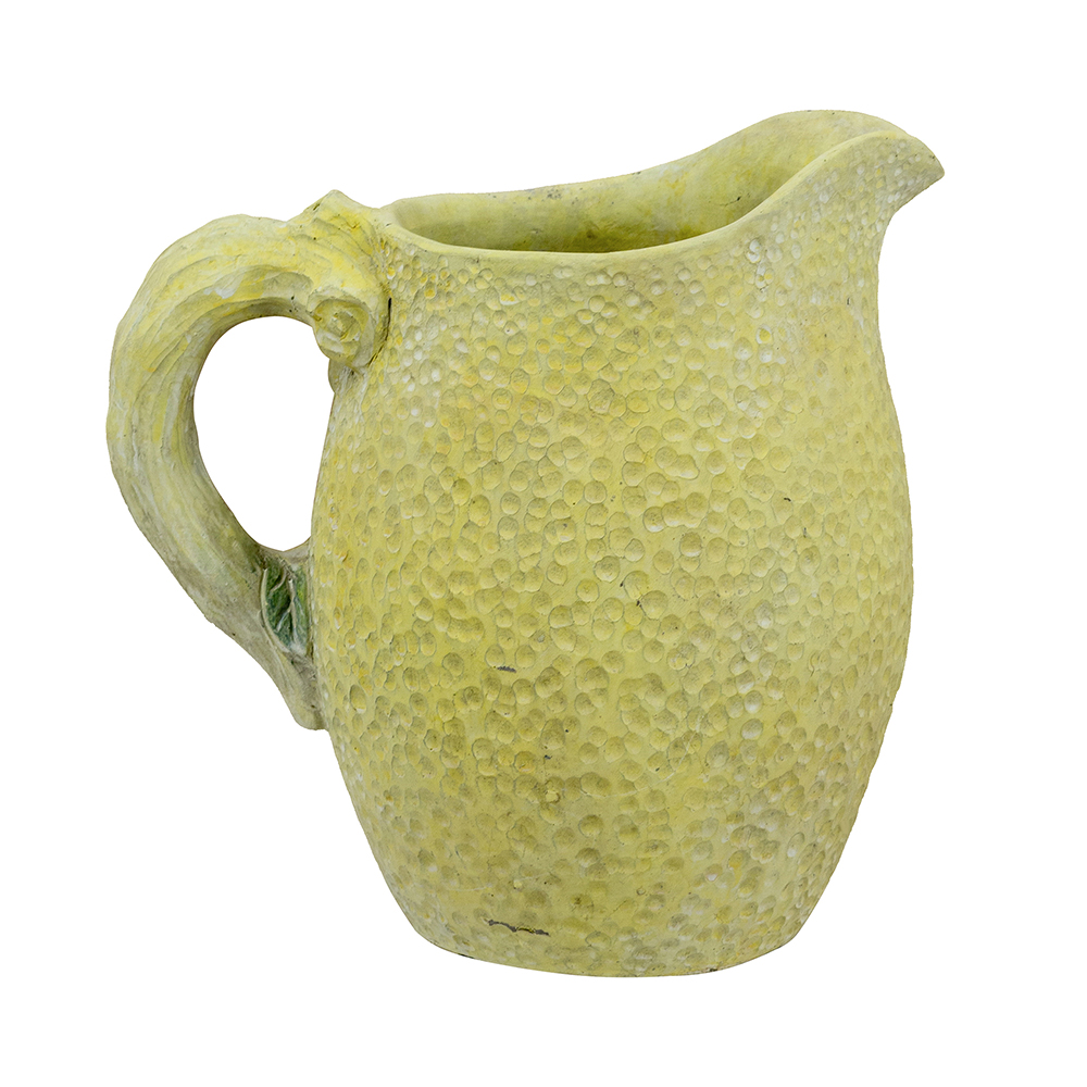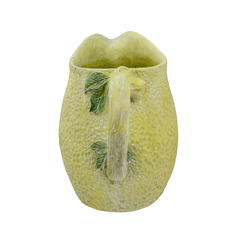 Jarra con acabado amarillo texturizado y sutiles hojas verdes