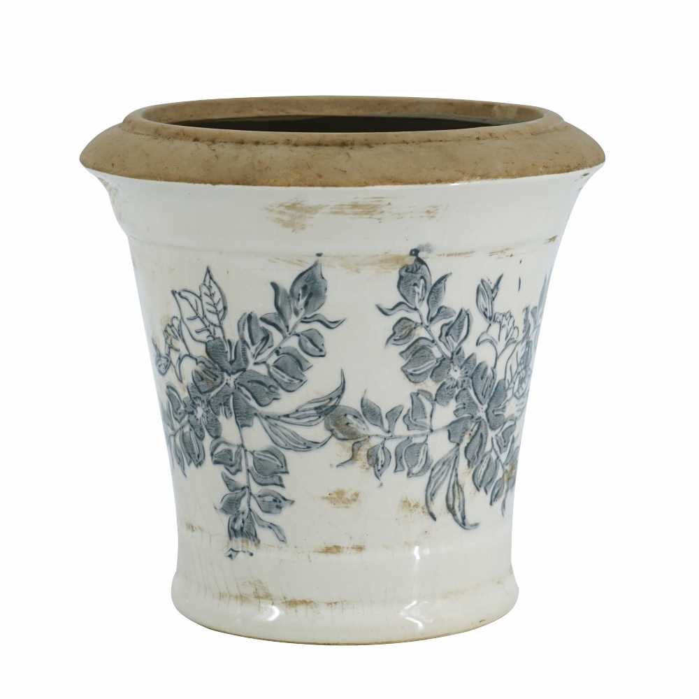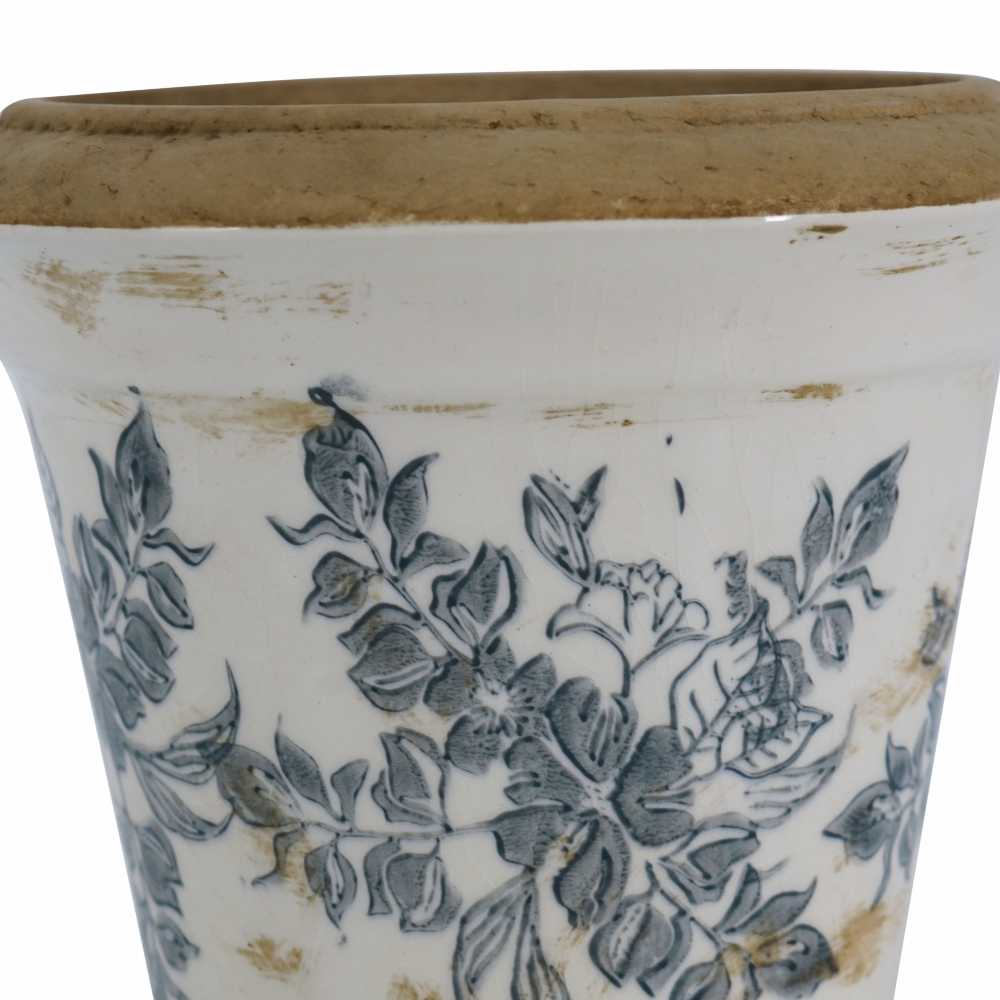 MACETA DE INTERIOR DE CERAMICA BLANCO CON FLORES AZULES