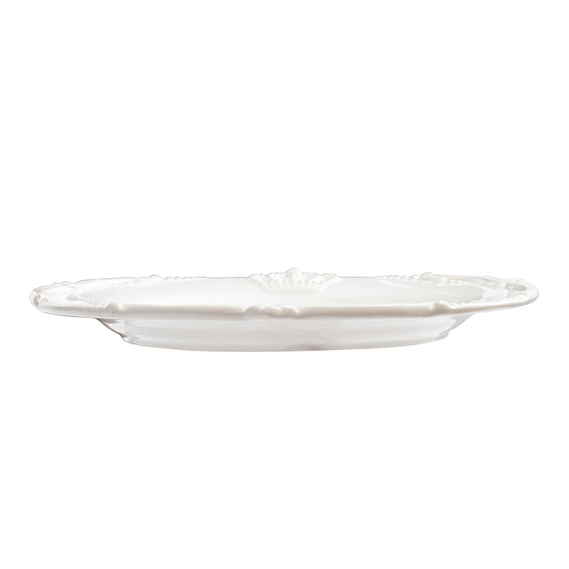 Plato tendido blanco de porcelana con detalle de corona